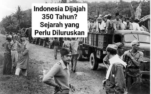 Angka 350 tahun berasal dari kedatangan VOC Belanda pada tahun 1602, penjajahan bukan terhadap seluruh Indonesia. Pada masa itu, Nusantara masih terdiri dari kerajaan-kerajaan berdaulat seperti Mataram, Aceh, Banten, Gowa, Ternate, dan Tidore. VOC hanyalah perusahaan dagang yang perlahan memperluas pengaruhnya melalui monopoli, perjanjian paksaan, dan perang.